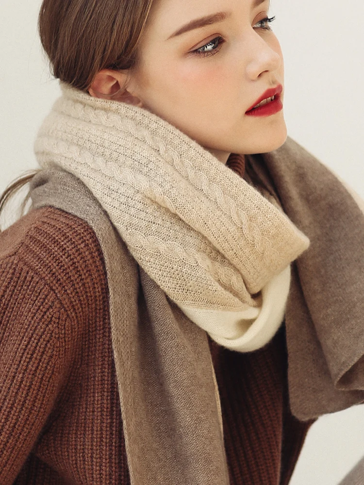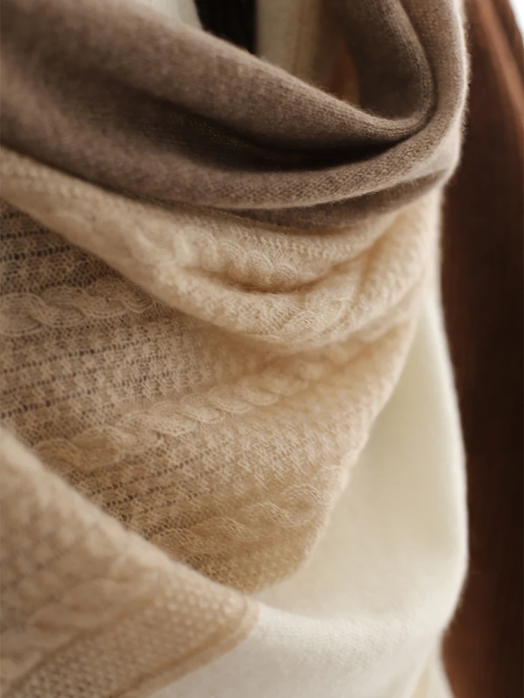 Autumn new high-end 100% pure cashmere shawl knit cardigan scarf with thin outerwear