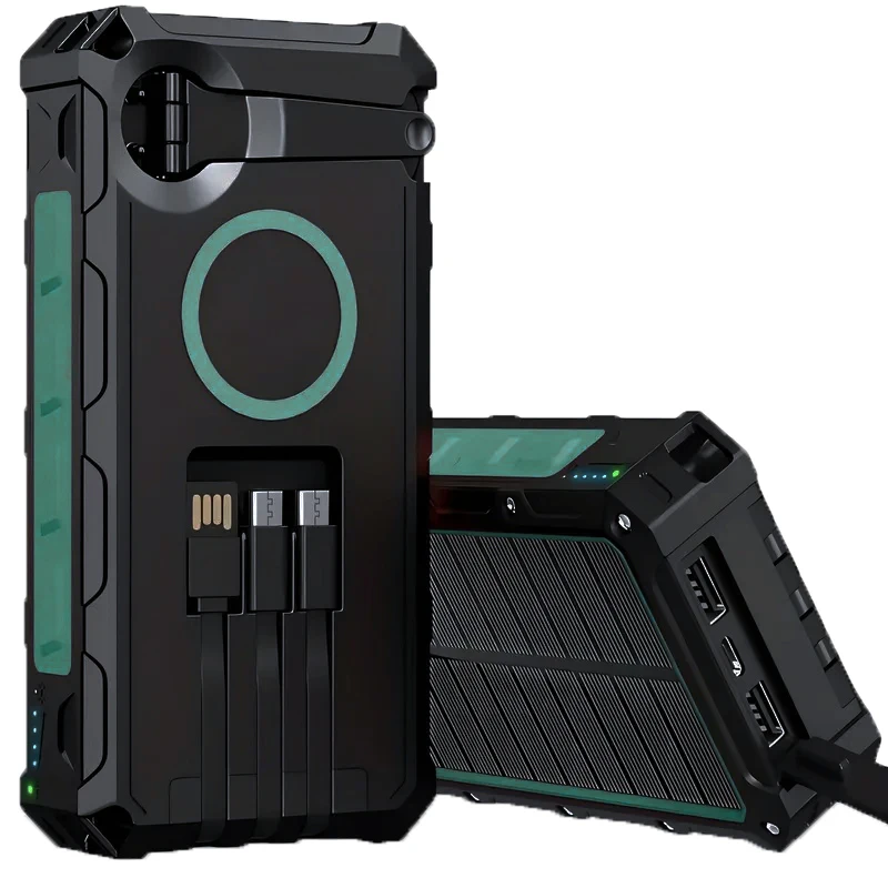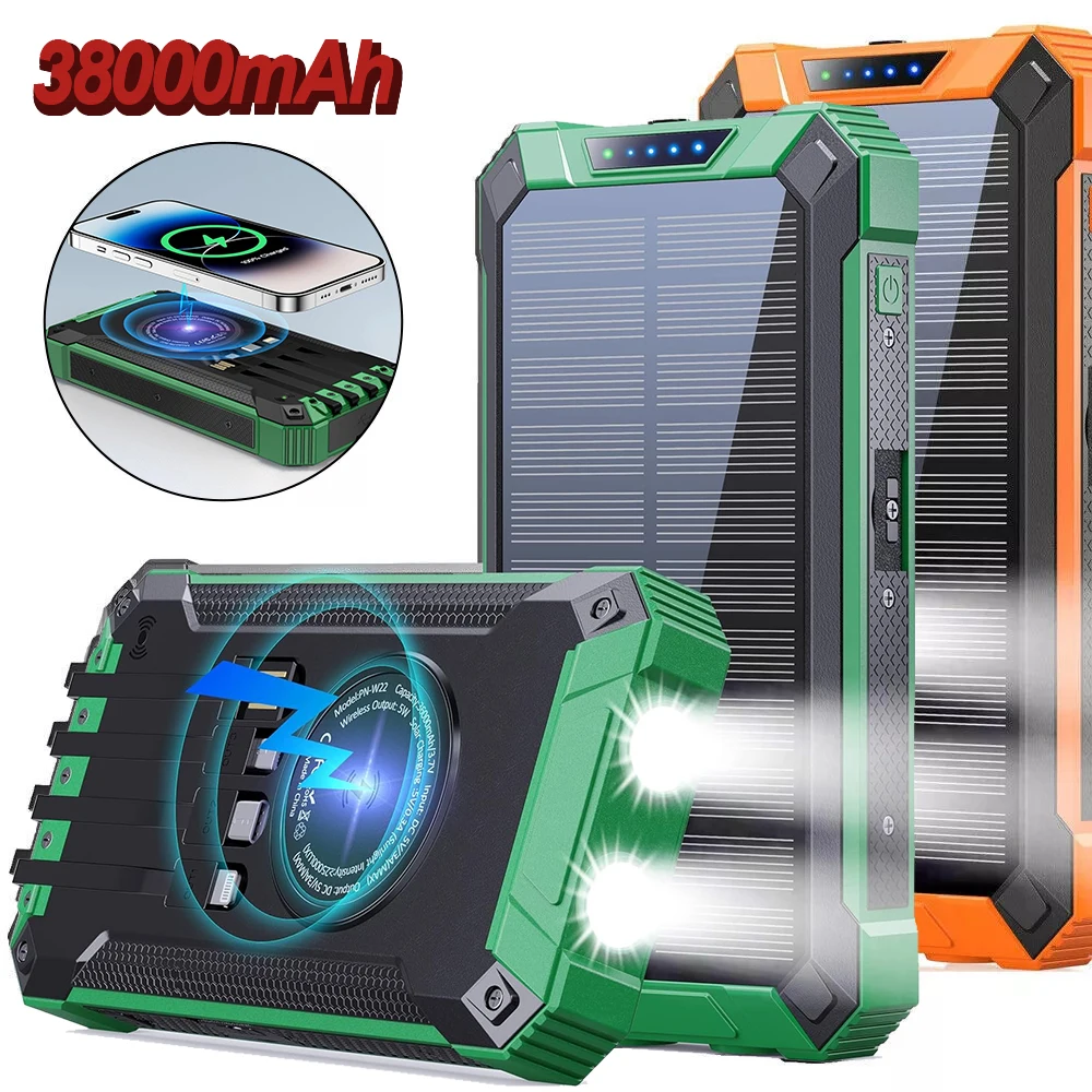 80000mAhTop Solar Charger Solar Power Bank Built Cables Portable Power Source 2 USB Ports For Xiaomi iPhone With LED Light New