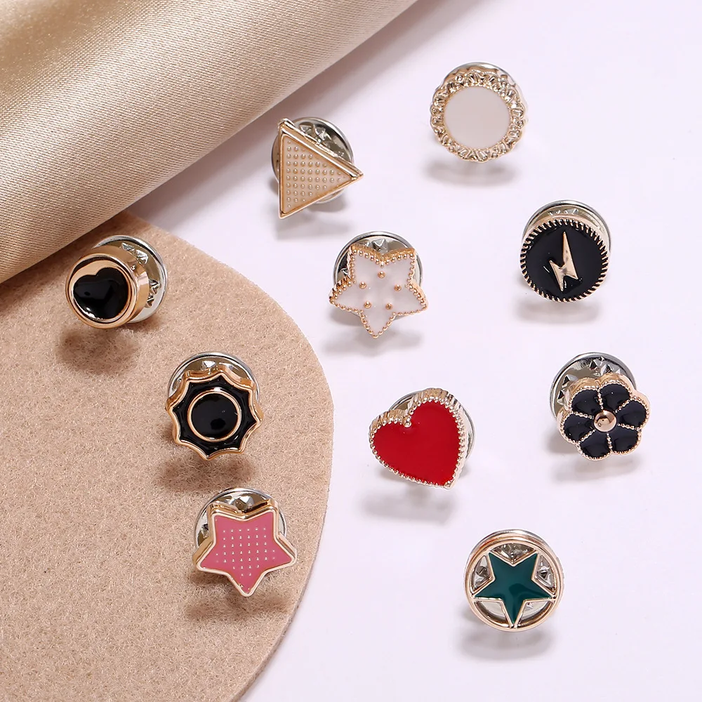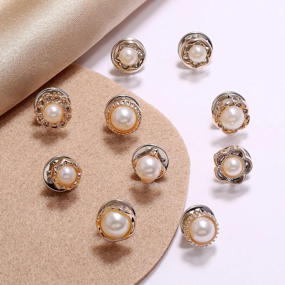 10Pcs Women Brooch Button Pearl Rhinestone Prevent Exposure Shirt Snap Buttons Brooch Pins Badge Cufflinks Button Clothes Decor