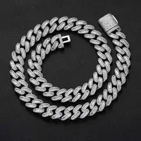 15mm Zircon Cuban Link Chain Iced Out In hand-set Simulated Diamond Stones Bling Miami CZ Necklace Gift for Her/Him