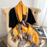 90*90cm Versatile Silk Scarf Women Large Shawl Floral Print Stoles Square Bandanna Luxury Brand Kerchief Female Foulard muffler