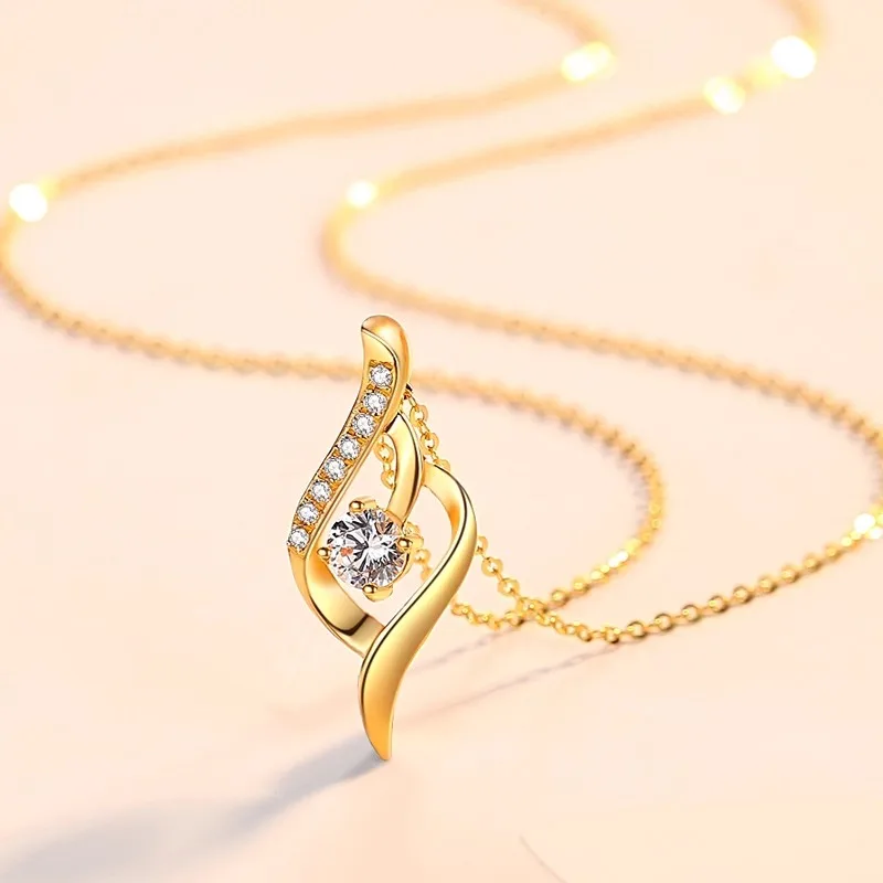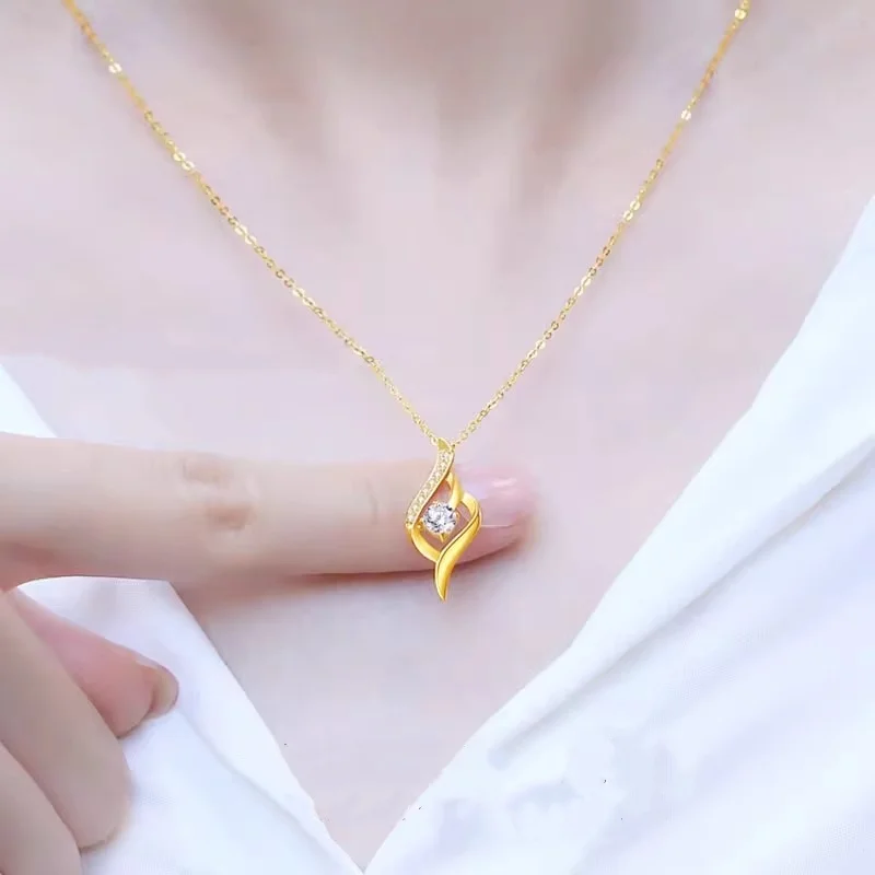 18K Gold Pendant Necklace Trendy AU750 Heart to Heart Design Versatile Clavicle Chain Set Sexy Proposal Gift for Girlfriend