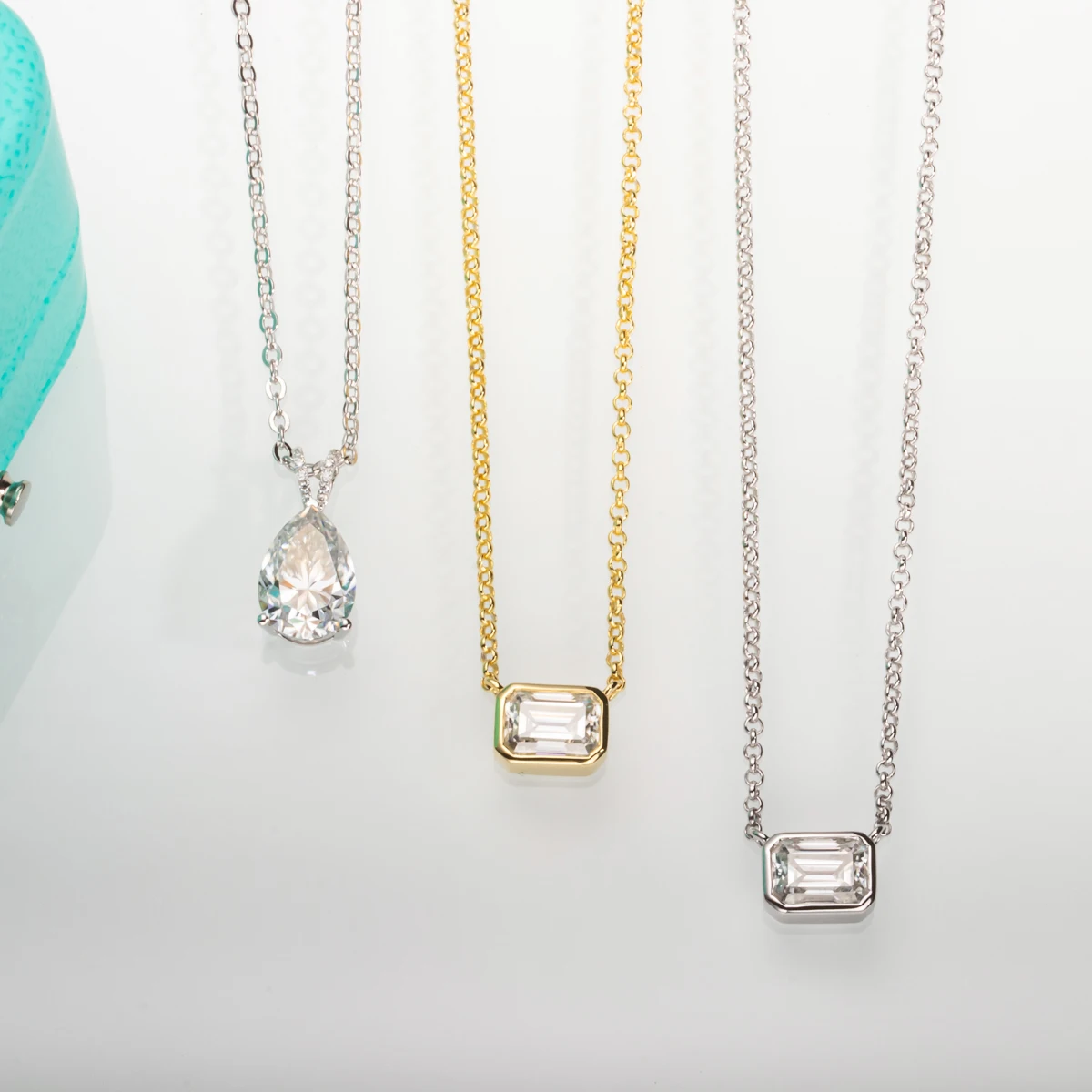 1ct D Color Emerald Cut Moissanite Pendant Necklace 925 Sterling Silver Necklaces For Women Gifts