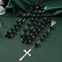 1pcs Handmade Necklace Ladies Imitation Vintage Style Pearl Rosary Beads with Cross Pendant Jewelry