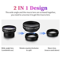 2 In1 Super Wide-Angle 0.45x49uv Universal Clip 37mm Macro HD Lens Professional Magnifying Camera Glass For iPhone Huawei Xiaomi