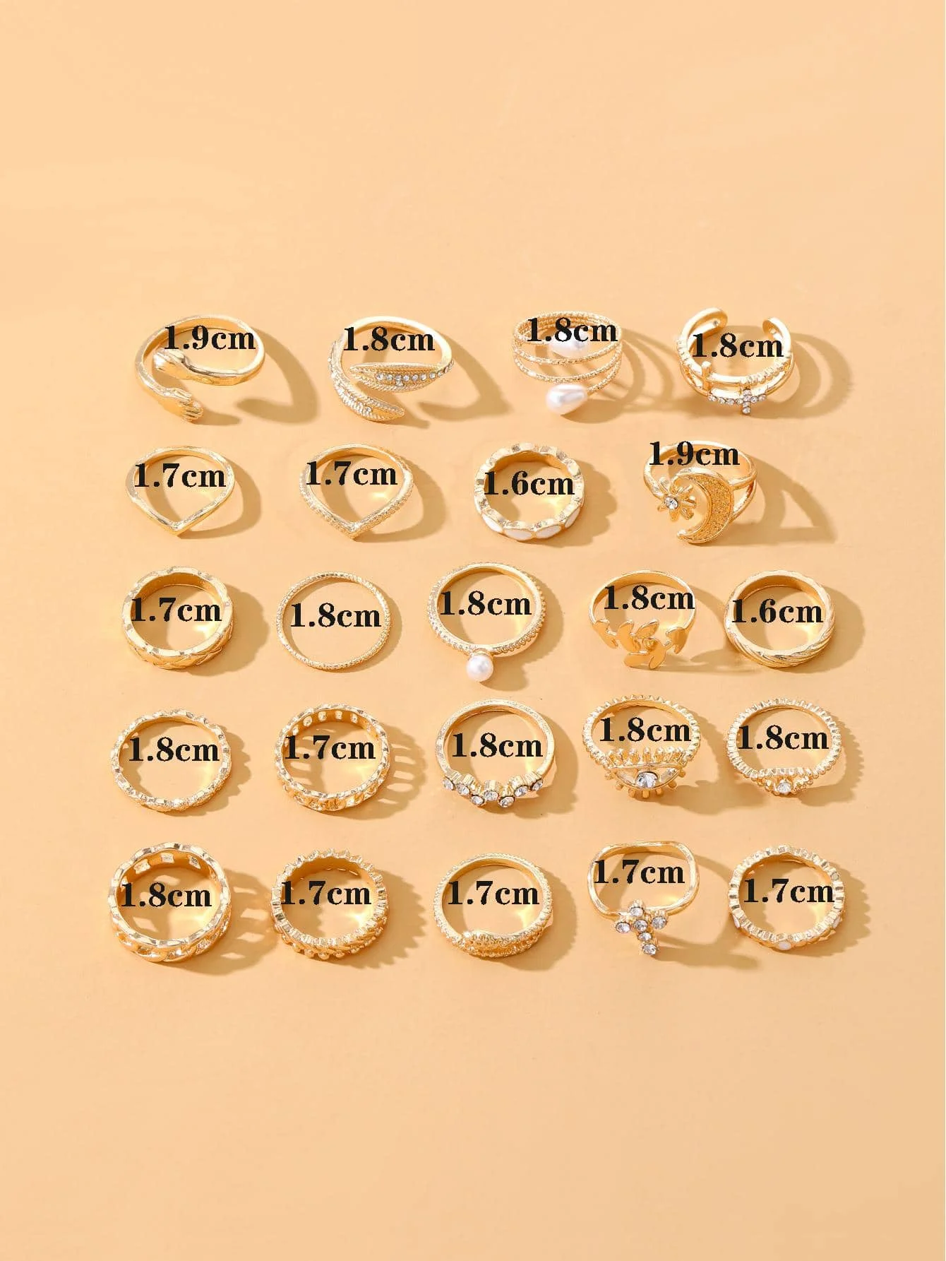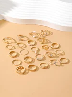 22 Pcs/Set of Fashionable Punk Style Cartoon Pearl Rings Set for Women Parties Festivals Gifts Daily Versatility Jewelry