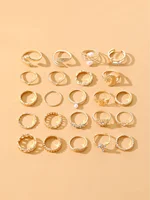 22 Sets of Ladies Jewelry European And American New Creative Simple Temperament Spiral Fake-pearl Love Ring Gold-color