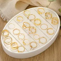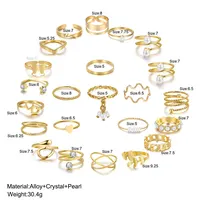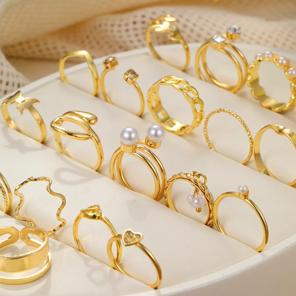 22 Sets of Ladies Jewelry European And American New Creative Simple Temperament Spiral Fake-pearl Love Ring Gold-color