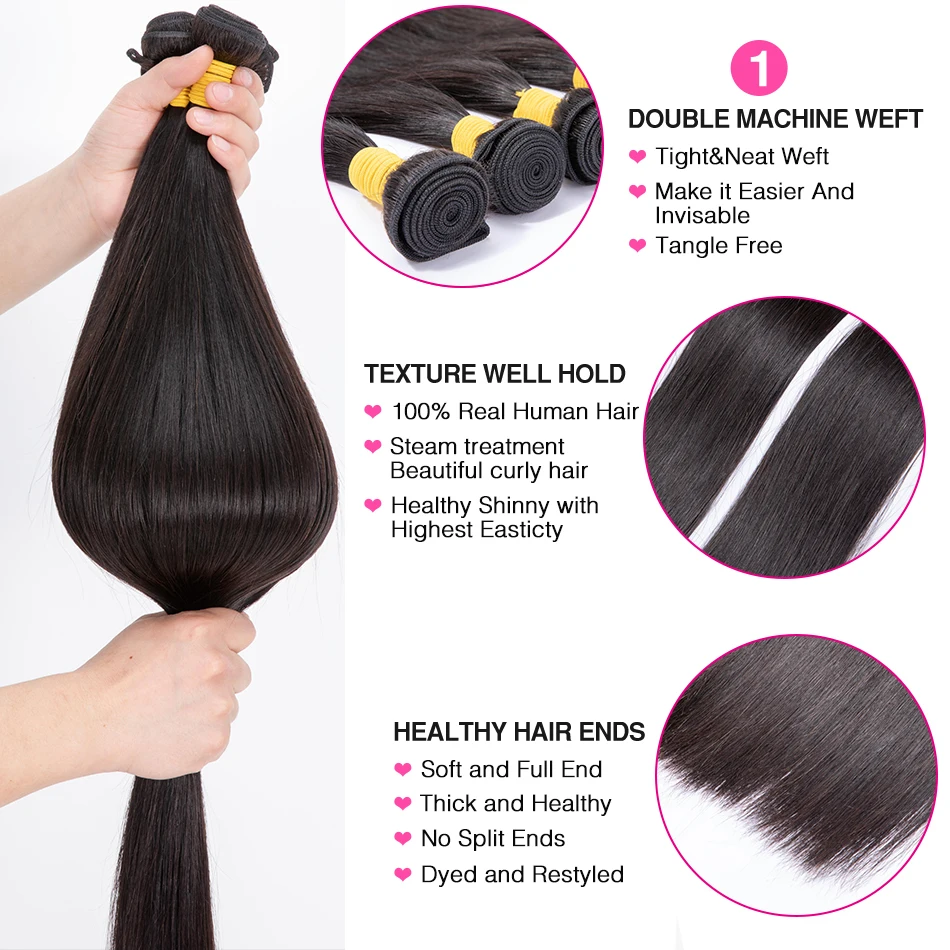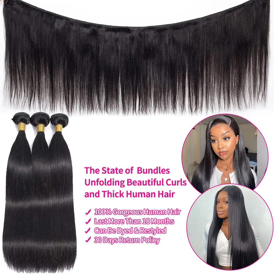 28, 30, 34 inches Bone Straight Brazilian Human Hair Weave Bundles 2, 3, 4 Bundles Raw Remy Natural Human Hair Bundles Hair Extensions
