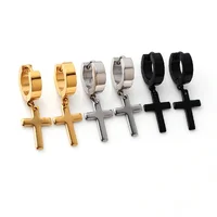 2pc Stainless Steel Men Cross Stars Punk Dangle Earrings Gothic Woman Cross Ear Hoop Earrings Huggies Pendant Piercing Jewelry