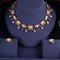 Luxury 2pcs Bridal Zirconia Jewelry Sets For Women Party, Luxury Dubai CZ Crystal Wedding Jewelry Sets