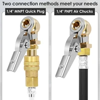 [2-Way Connection] The 2 air chucks have standard US 1/4inch NPT threads for easy connection to air lines, air compressors or tire inflators for tire inflation. It can also connect to the female quick coupler of air line via the male plug included in the package. Note: Please use the included original sealing tape to prevent leaks.