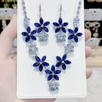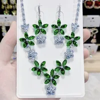 2pcs Green Flower Necklace Earrings Pendant Zirconia Women Crystal Bridal Wedding Fashion Jewelry Set Party Gifts