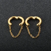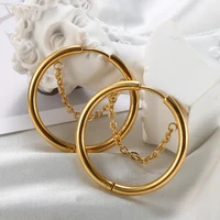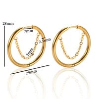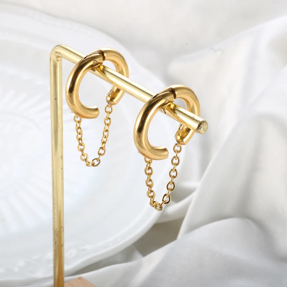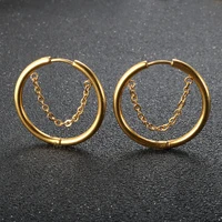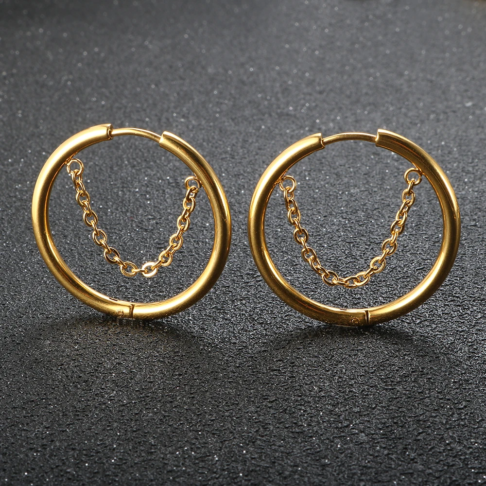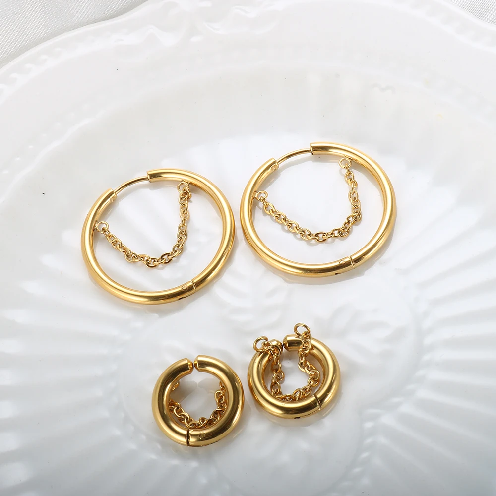 2pcs set, Stainless Steel Small Hoop Earrings for Women Golden Circle Thick Ear Ring Piercing Tassel With Chain Earrings Jewelry