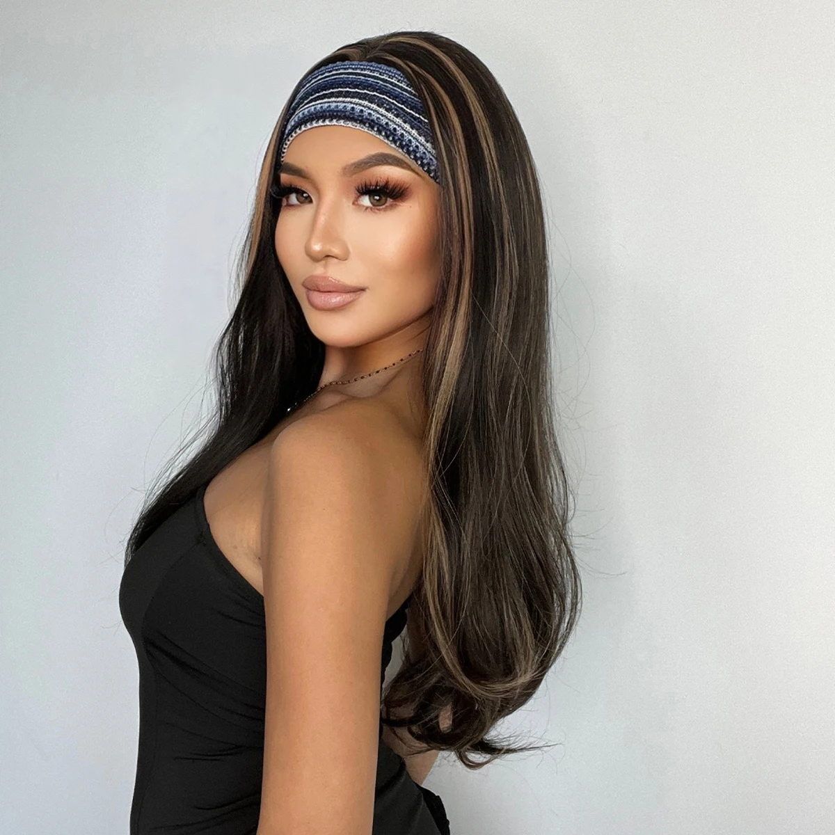 3/4 Synthetic Hair Half Wig Ladies Brown Long Wavy Wigs with Comb Head Cap Clip Head Band Wigs for Women Jewish Band fall Wig
