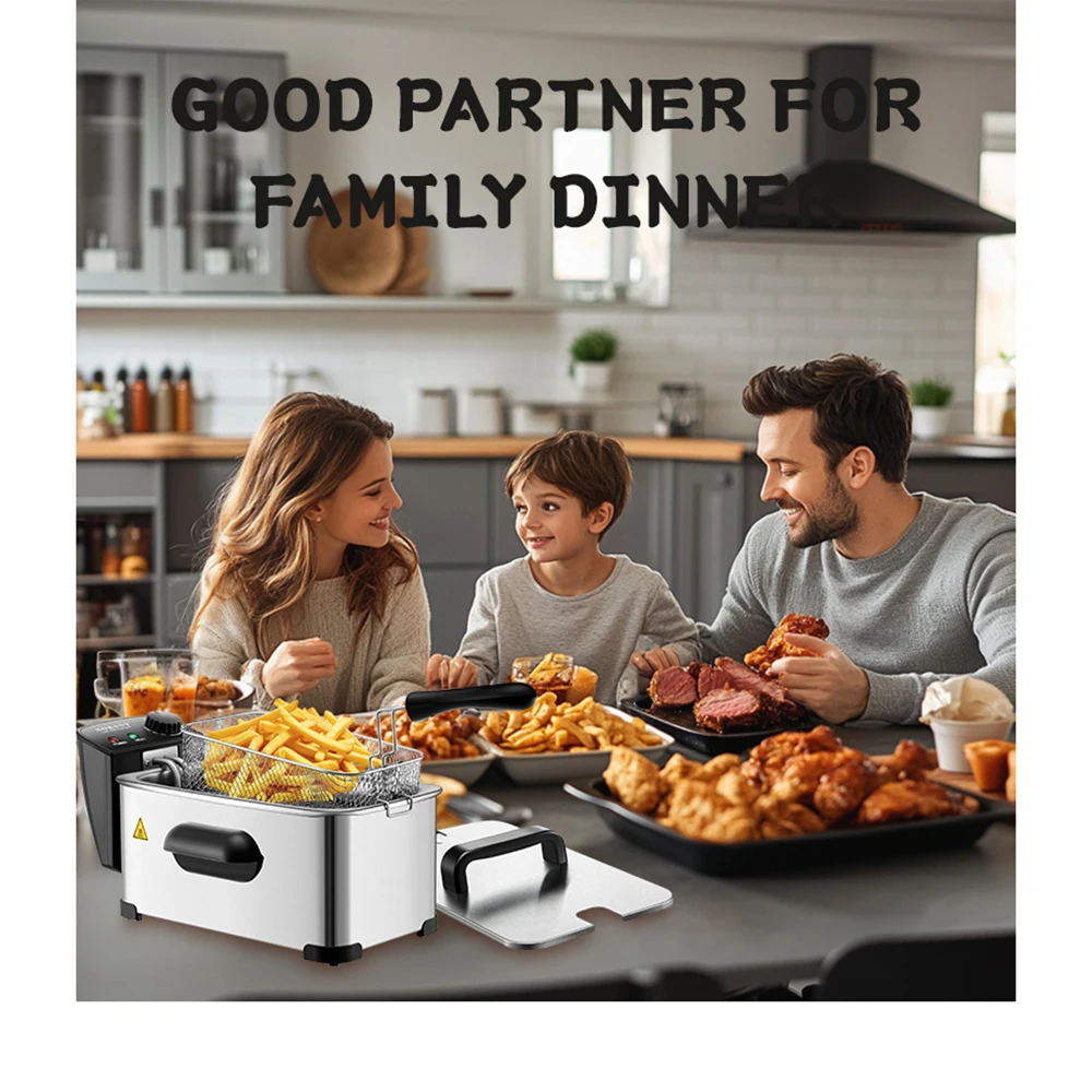 3.5L Household & Commercial Electric Fryer Frying, Fritters, Fried Chicken Slices Adjustable Temperature Easy To Clean