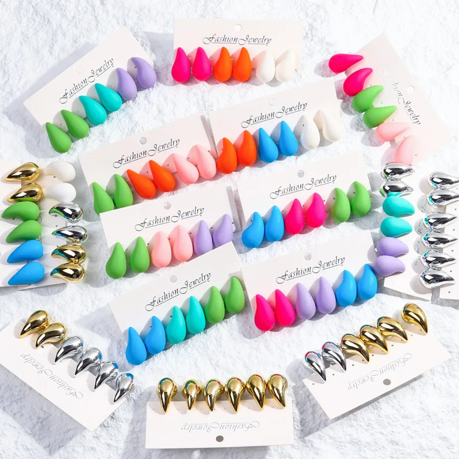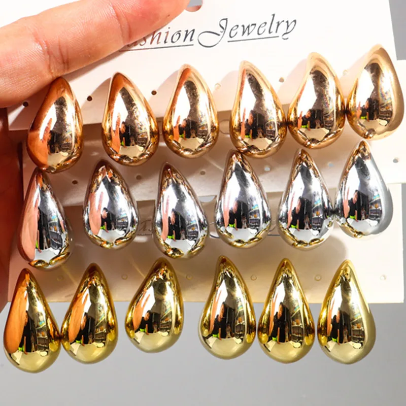 3 Pair/Set Chunky Gold Plated Waterdrop Hoop Earrings for Women Smooth Multicolour Acrylic Tear Drop Earring Lightweight Jewelry