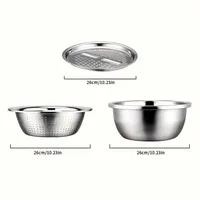3-Piece Stainless Steel Multifunctional Strainer, and Mixing Bowl for Washing and Slicing Fruits, Vegetables
