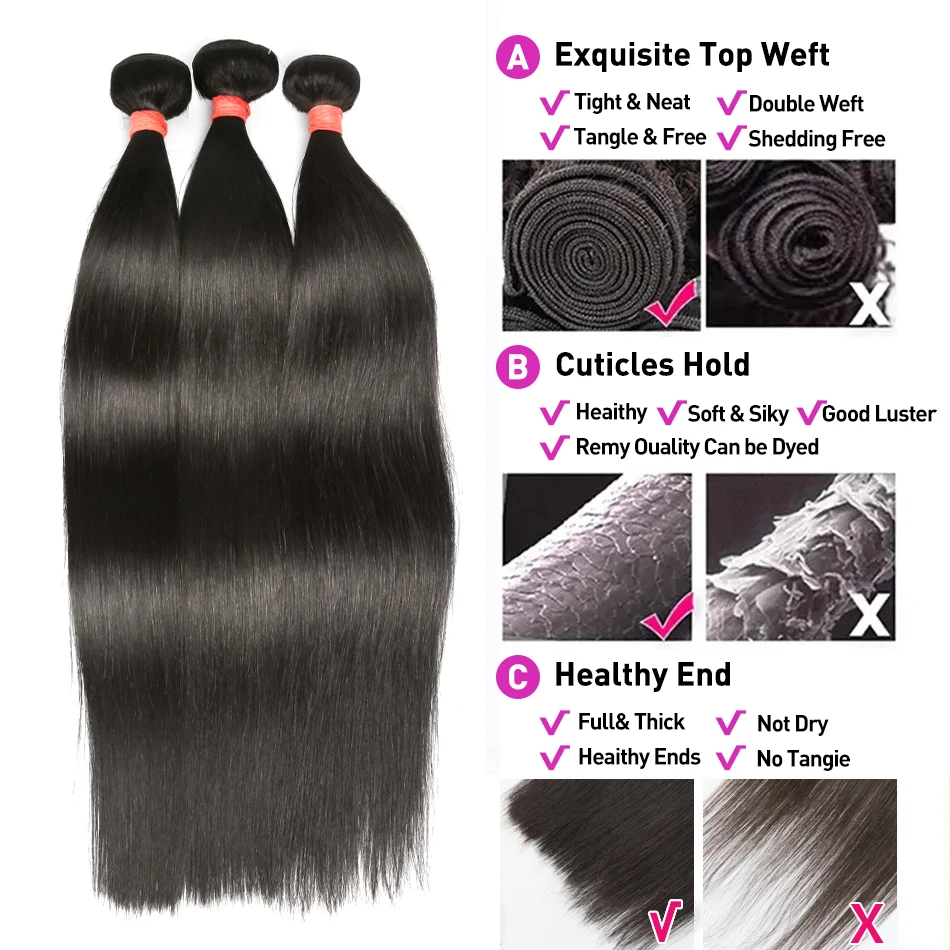 30, 40, 42 inches Bone Straight Human Hair Weave Bundle 2, 3, 4 Bundles Raw Virgin Remy Indian Double Drawn