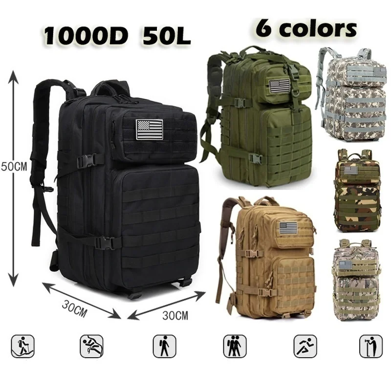30L/50L, 1000D Nylon Waterproof Trekking Fishing Hunting Bag Backpack Outdoor Military Rucksacks Tactical Sports Camping Hiking