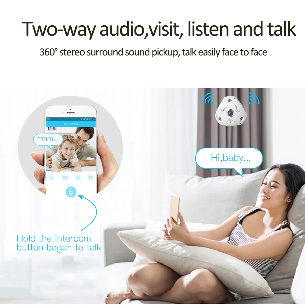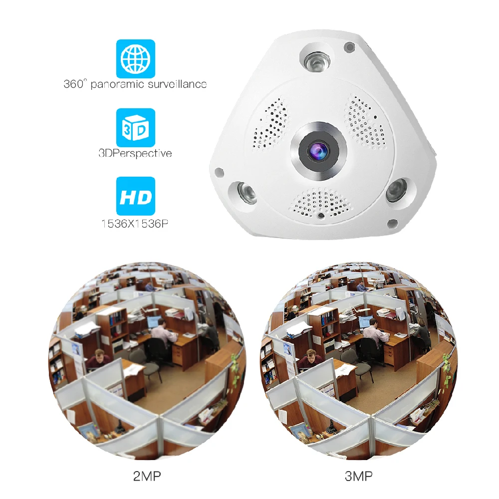 360 Degree Panoramic WiFi Camera 3MP Fisheye IP Camera 3D Surveillance Security Camera IR Night Vision Two way intercom