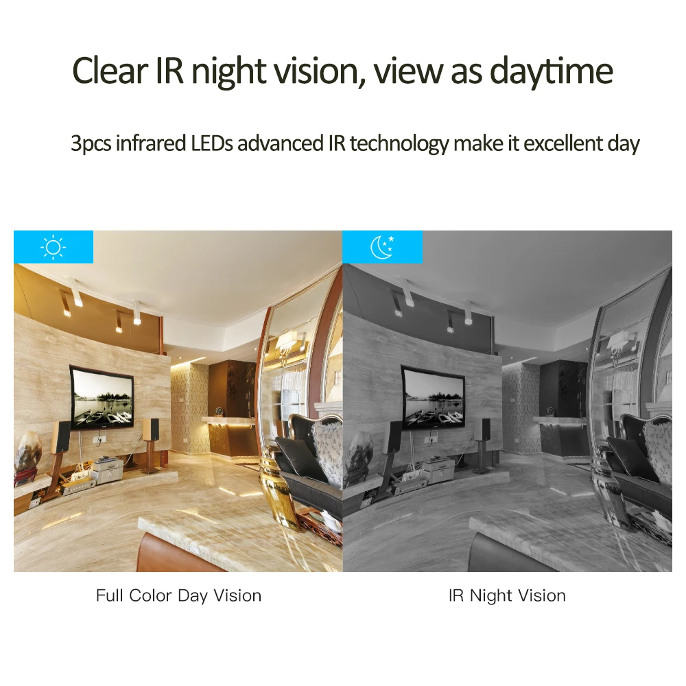 360-degree viewing, get more details from the camera. 3MP resolution not only has better clarity but also better color purity and balance