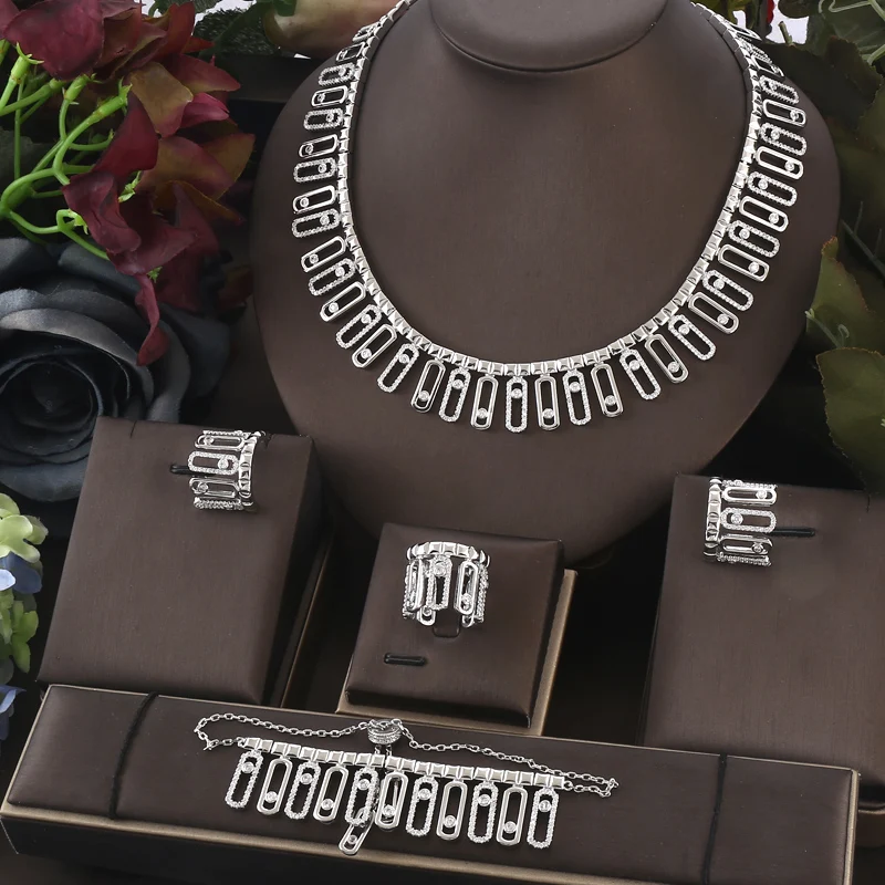 2pcs Bridal Zirconia Full Jewelry Sets For Women Party, Luxury Dubai CZ Crystal Wedding necklace sets