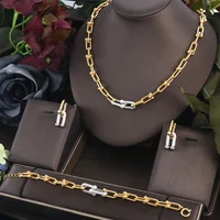 3pcs Dubai Cubic Zirconia Wedding Jewelry Set Luxury Dubai CZ Crystal Wedding Necklace