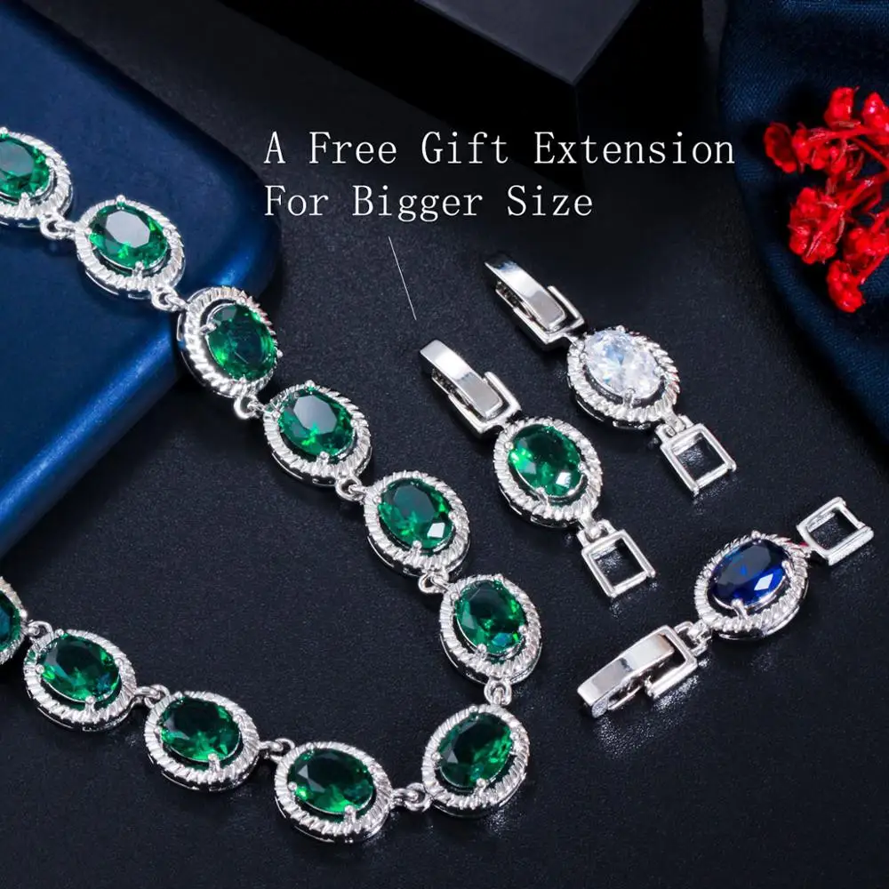 3pcs High Quality Green Cubic Zirconia Classic Silver Color Women Wedding Party Costume Jewelry Sets