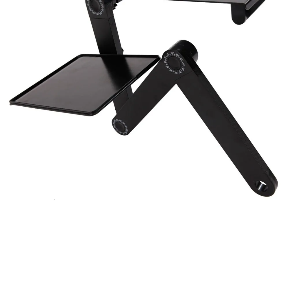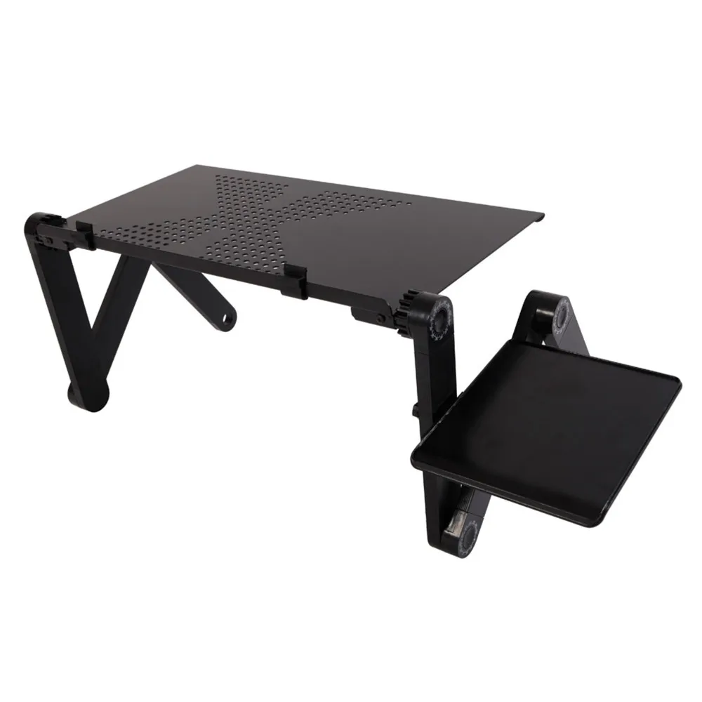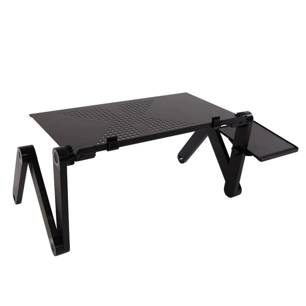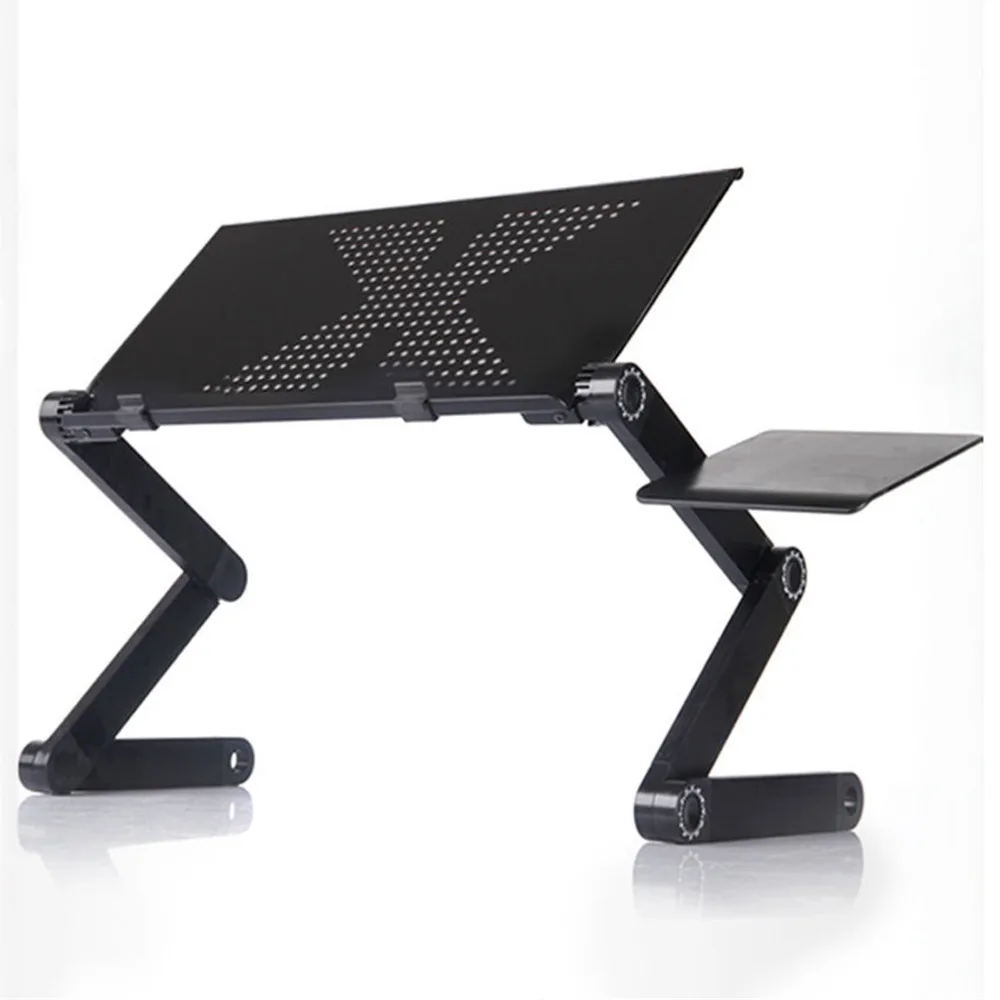This is a portable and versatile folding computer desk that can be placed on a desk to be a standing desk, or on a bed or anywhere you want to use your laptop comfortably! You can also put books or tablets to free your hands.The foldable table legs can be rotated 360 degrees. Lock the position at different angles. Press the adjustment knob to adjust the angle. The knob has a scale for you to confirm the angle and adjust balance of the table. The legs are made of aluminum alloy, which is durable and flexible.