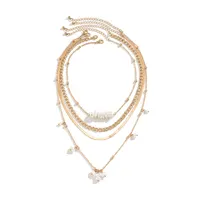 4Pcs/Set Vintage Irregular Imitation-Pearl Pendant Choker Necklace Women Wedding Bridal Goth Flat Snake Chain Neck Jewelry New