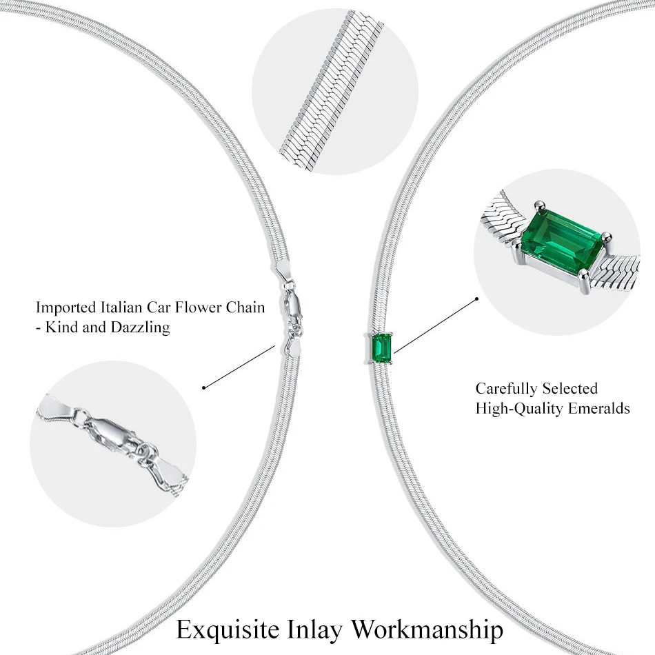 4x6mm Emerald Gemstone Vintage Choker for Women Real 925 Sterling Silver Snake Bone Chain Wedding Party Fine Jewelry