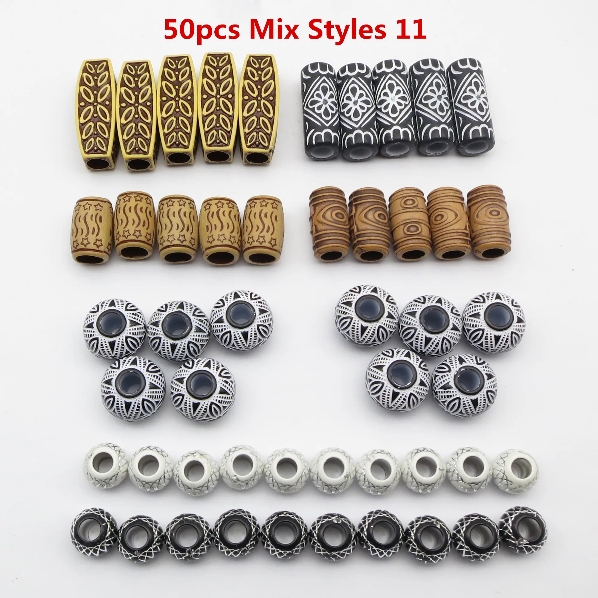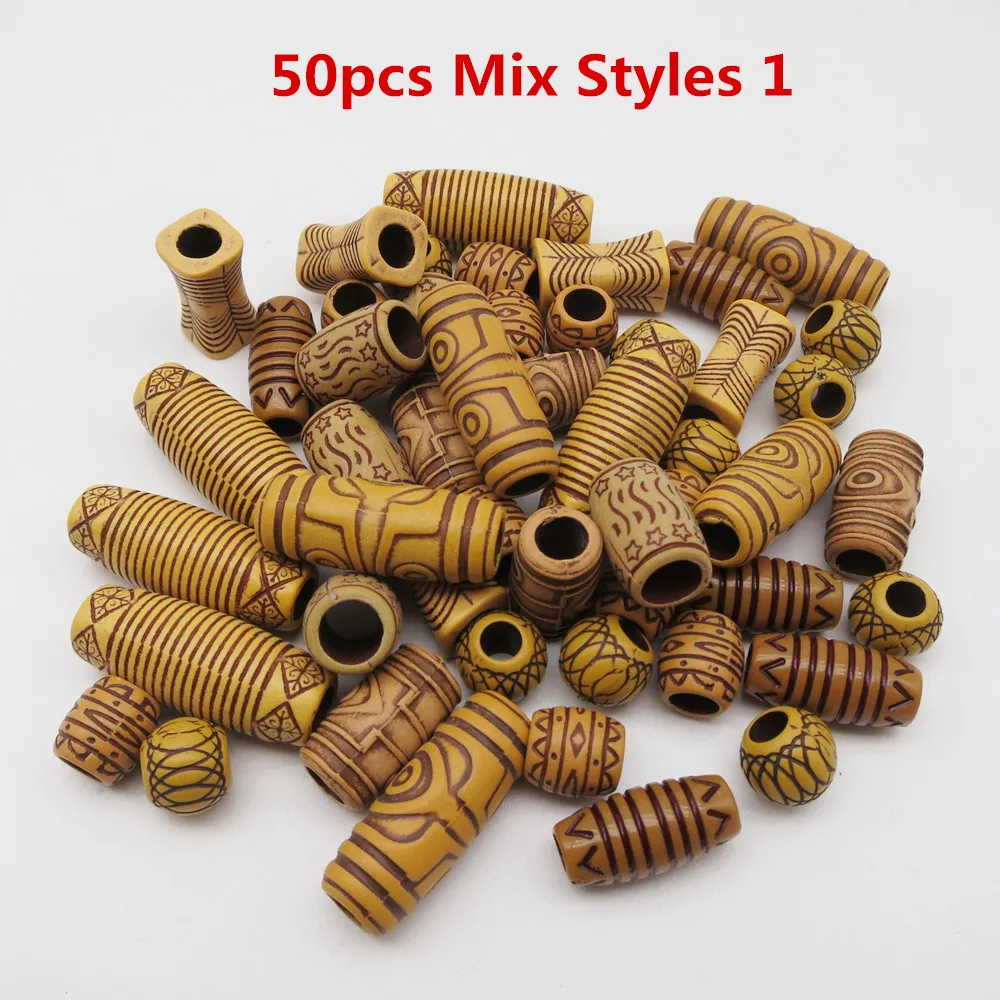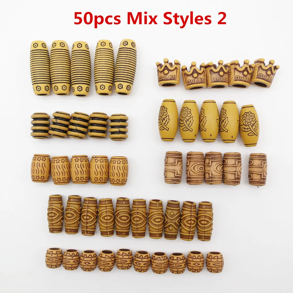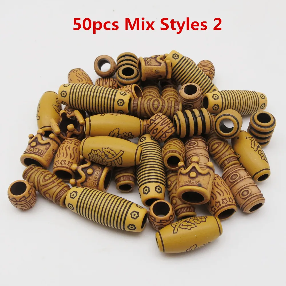 50pcs/Pack Mix Imitation Wood Plastic Crochet hair braid dread dreadlock Beads rings tube for women men hair Accessories