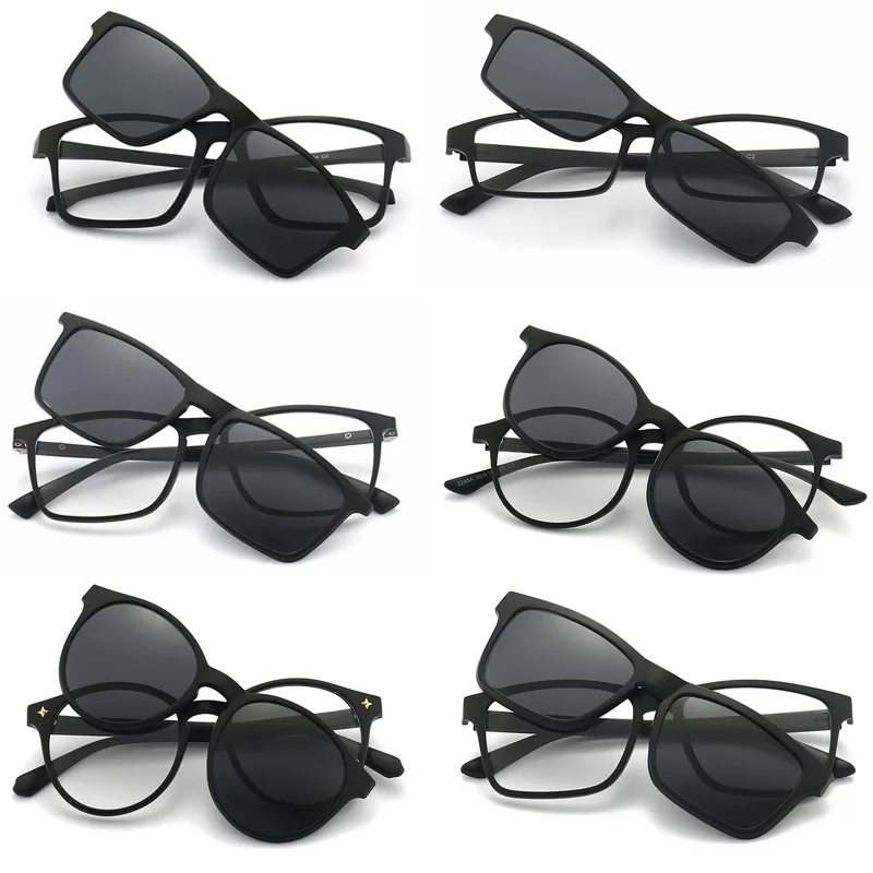 5PCS Magnetic Polarized Clip On Sunglasses Women Men Plastic Frame for Night Driving Sunglasses UV400