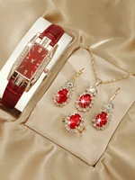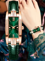 5PCS Set Fashion Women Rectangle Watches Ladies Business Green Leather Quartz Watch Womens Necklace Earrings Bracelet Wristwatch