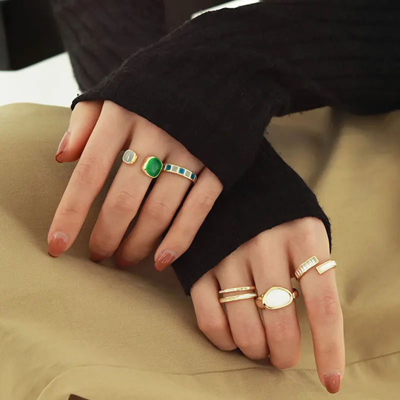 6 Piece set Irregular Open Rings Moonstone Heart Finger Rings for Women Girls K-pop Sweet Cool Trendy Aesthetic Jewelry Gifts