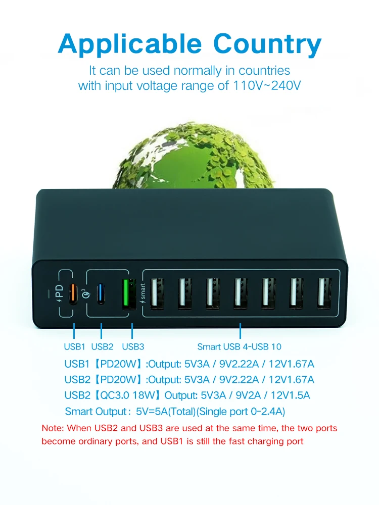1. This product Includes 【65W 10 Port】/【60W 10 Port】 USB Charger, Please pay attention to the selection。