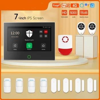 7 inch Home Alarm System Wireless WiFi 4G Tuya Smart Security Protection Kit Built-in 115dB Louder Siren 5000mAh Battery