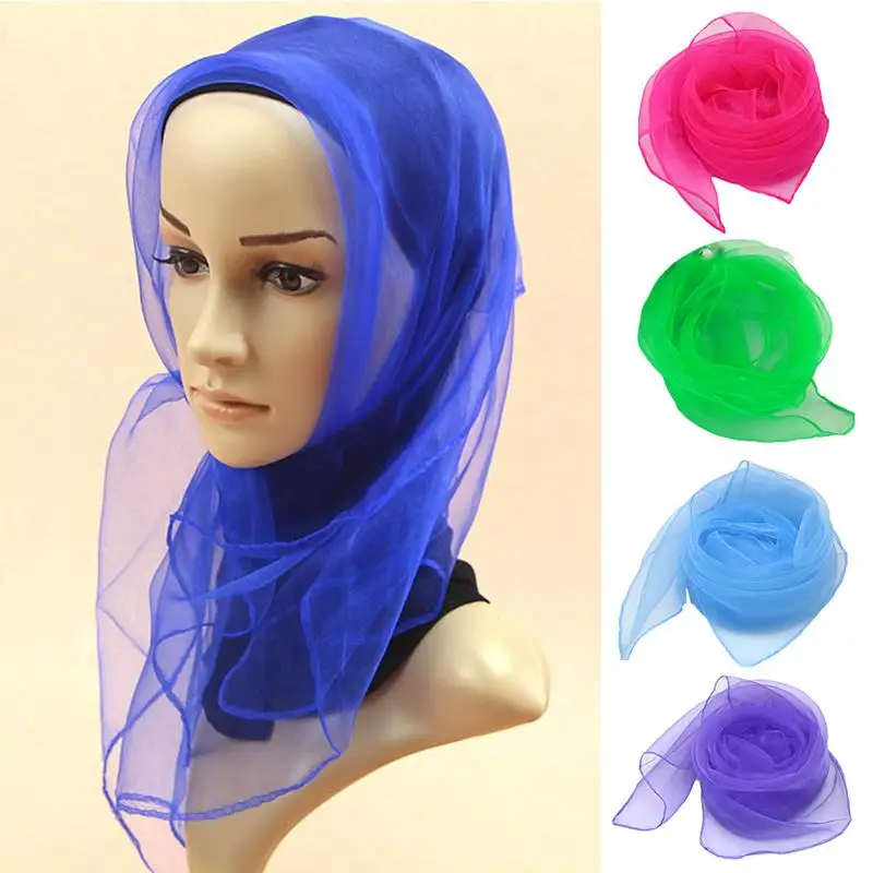70*70cm Transparent Organza Scarf Chiffon Square Scarfs Thin Silk Scarves Neck Shawl Stage Performance Scarf Pure Color