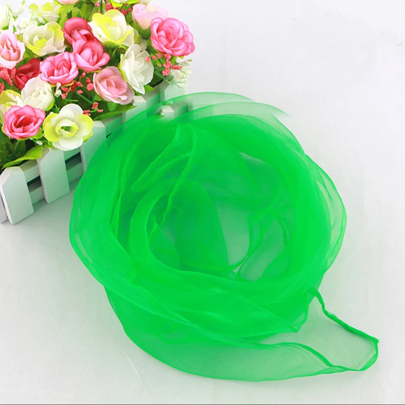 The item is simple and fashion juggling scarves, which are made of chiffon fabric. Can be used as stage props for dance performance. Suitable for kindergarten, dance group and gift to decorate your bag or sun block use.
