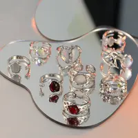 9 Pcs New Fashion Y2k Irregular Open Ring Set Heart Finger Rings for Women Girls K-pop Sweet Cool Trendy Aesthetic Jewelry Gifts
