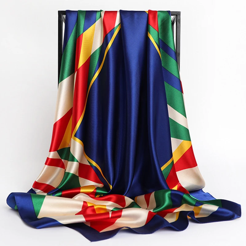 90*90cm Versatile Silk Scarf Women Large Shawl Floral Print Stoles Square Bandanna Luxury Brand Kerchief Female Foulard muffler