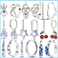 925 Silver Hoop Earrings For Woman Pendientes Zircon Heart Shape Star Eardrop Original Earring Fashion Jewelry