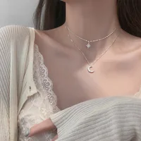 925 Silver Necklace for Women Double Layer Zircon Star Moon Pendant Necklace Delicate Chain Charm Elegant Fashion Jewelry Gifts