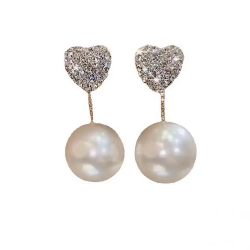925 Silver Needle Korean Fashion Crystal Heart Earrings for Women Jewelry Trending Women’s Red Pearl Drop Earrings