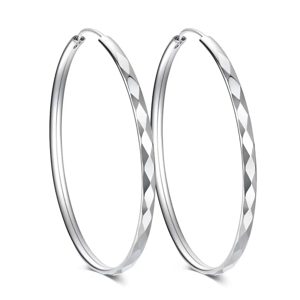 925 Sterling Silver 3, 4, 5, 6cm Round Hoop Earrings for Women Fashion Party Luxury Jewelry Accessories Christmas