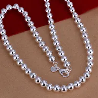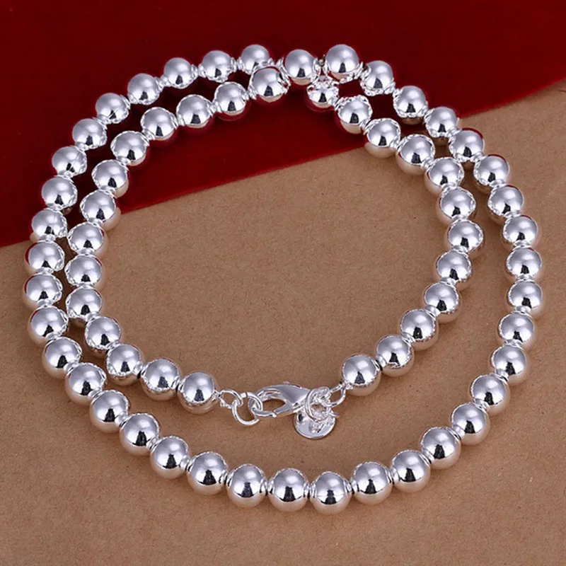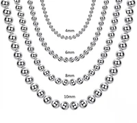925 Sterling Silver 4mm, 6mm, 8mm, 10mm Smooth Beads Ball Chain Necklace For Women Men Fashion Jewelry