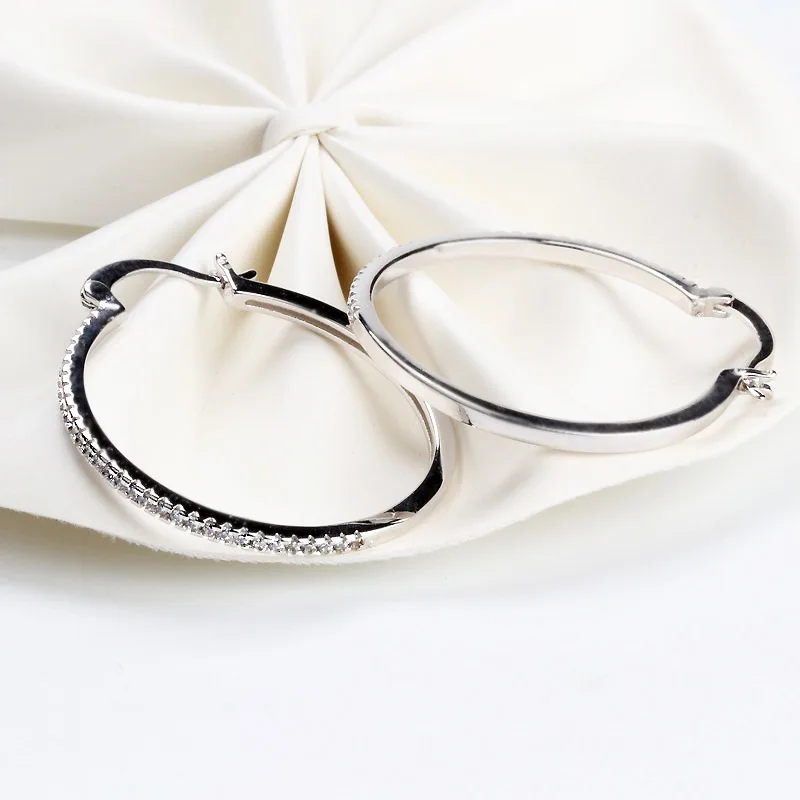 925 Sterling Silver Big Circle Inlaid Zircon Earrings For Women, S925 Argent Women’s Shiny Model Earring 17mm-40mm 5 Size