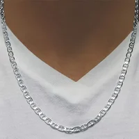 925 Sterling Silver chain 3.5MM Solid Flat Mariner Link Chain Necklace- Silver Necklace Chain, Men and Women