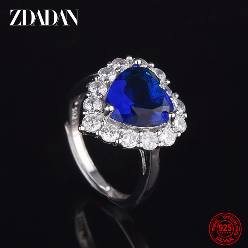925 Sterling Silver Heart Blue Crystal Necklace Ring Set For Women Wedding Jewelry Gift
